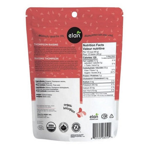 Elan, Organic Sun Dried Thompson Raisins, 225 Grams (Case Of 8)